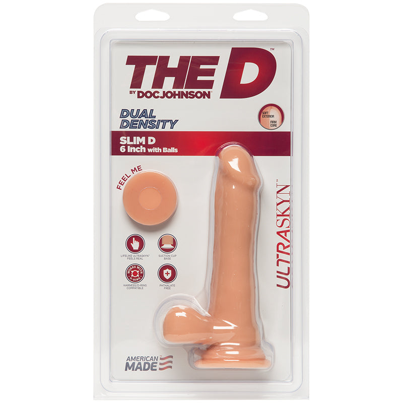The Slim D one of Doc Johnson’s® most popular shapes has a width that is pleasurable and comfortable for most bodies and is available in both FIRMSKYN™ and dual density ULTRASKYN™. Dual density ULTRASKYN™ warms to the touch and is designed with a soft exterior and firm core to emulate the feel of a real penis while the FIRMSKYN™ option offers a firmer feel in a classic pleasure product material. • Dual Density Design Feels Real • Slim Design Lifelike Detail • Soft Plush Exterior and Firm Inner Core • Suction Cup Base for Added Stability • O-Ring Harness Compatible • Handcrafted from ULTRASKYN™ for The Ultimate Feel • Phthalate-Free Body-Safe • Proudly Made in America