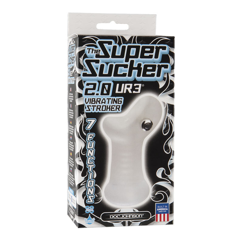 The Super Sucker 2.0 is made from the lifelike material UR3. Designed with only one hole for super sucking suction action! The unique design curves around the testicles while a multi-function bullet delivers the perfect amount of vibration where it feels best. Waterproof and phthalates free for wet and wild safe fun.