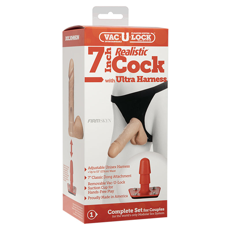Vac-U-Lock - 7 Inch Realistic Cock - With Ultra Harness White